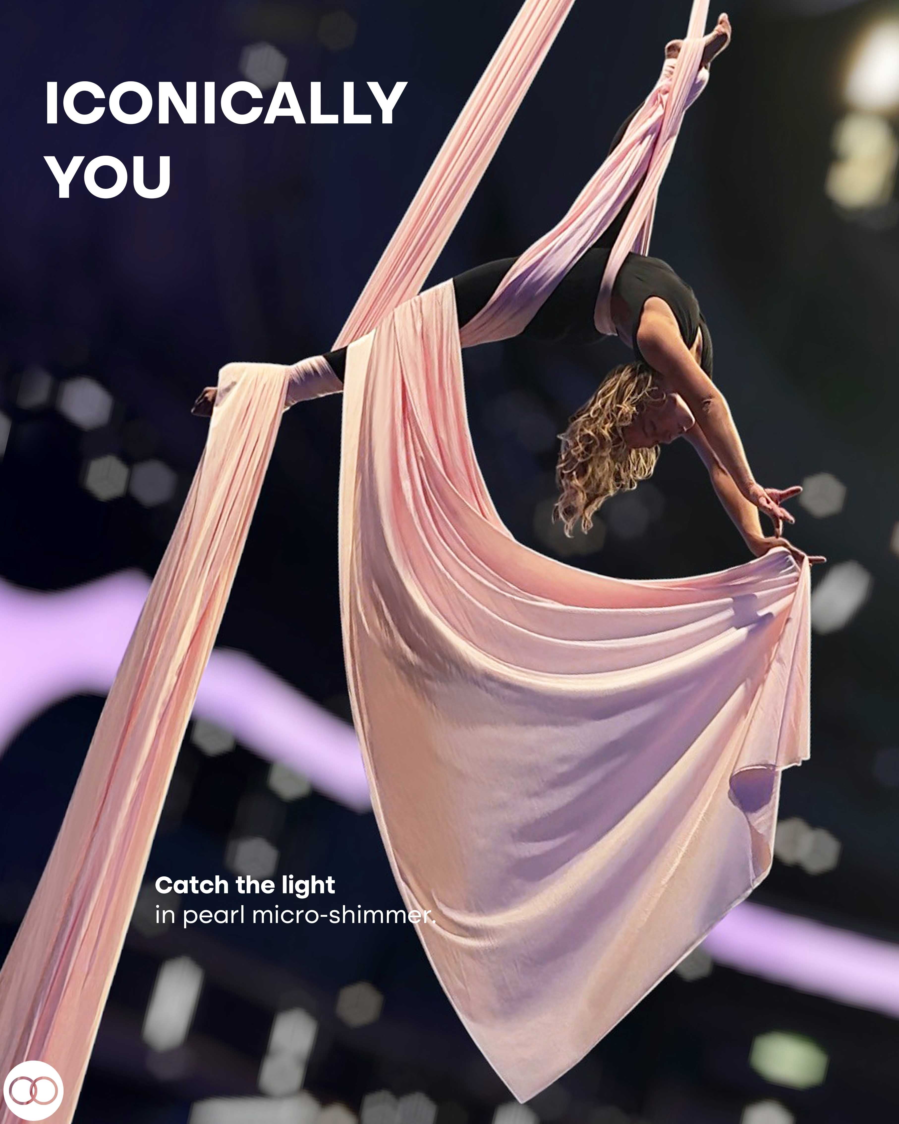Aerial arts takes your fitness to the sky! Fly high on shimmery and supportive aerial silks.