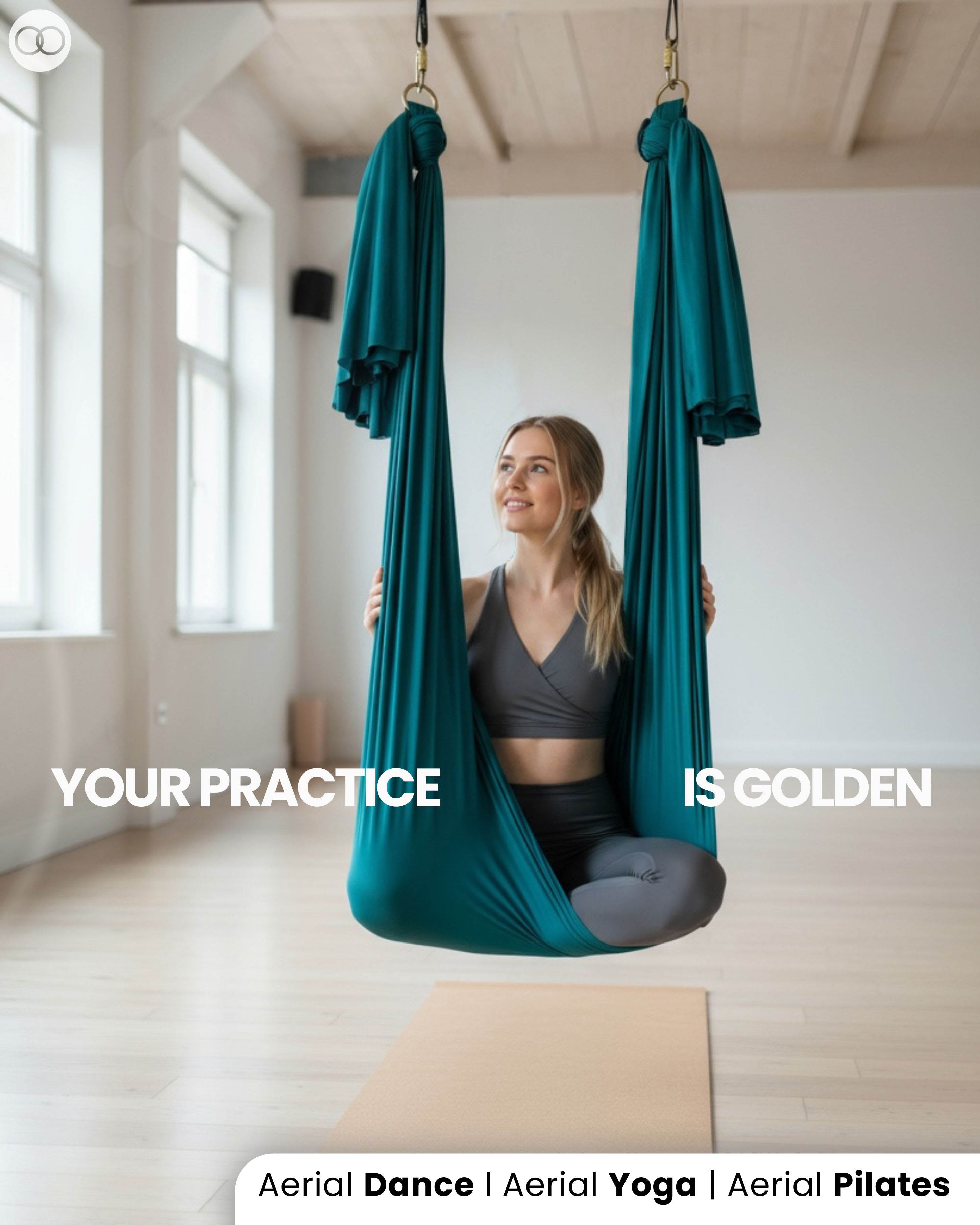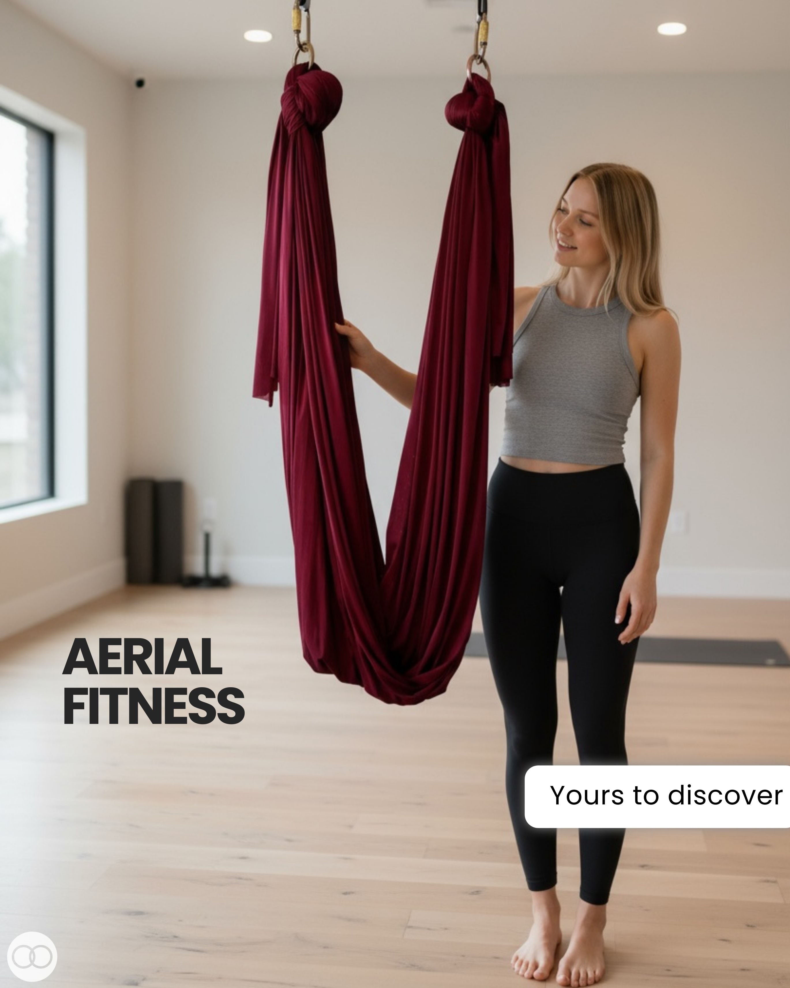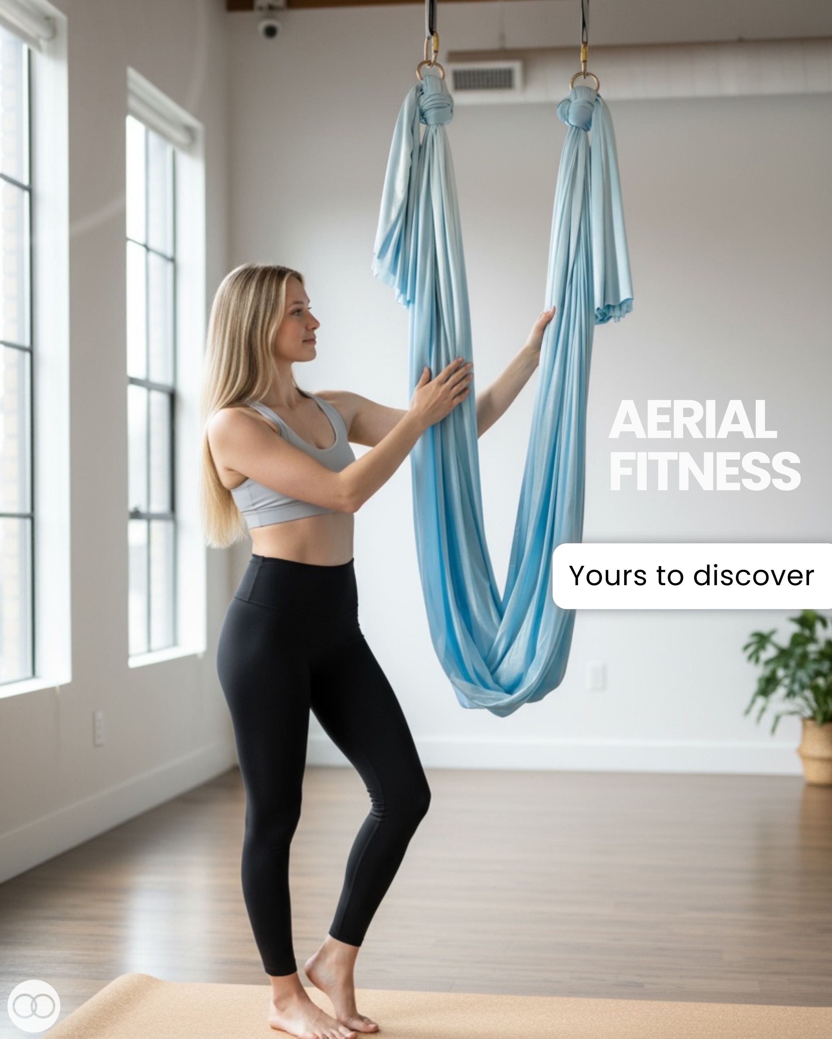Aerial arts takes your fitness to the sky! Fly high on shimmery and supportive aerial silks.