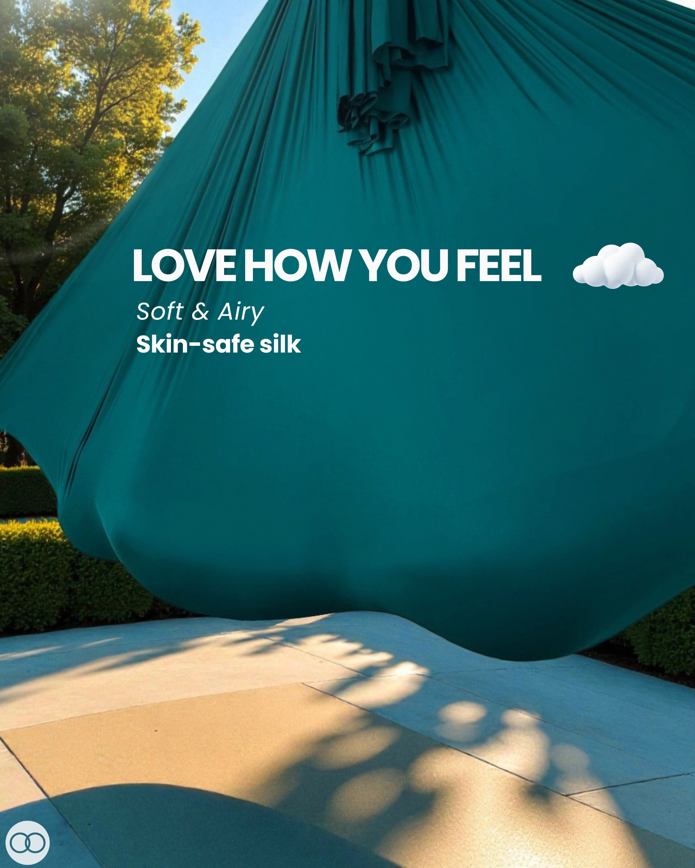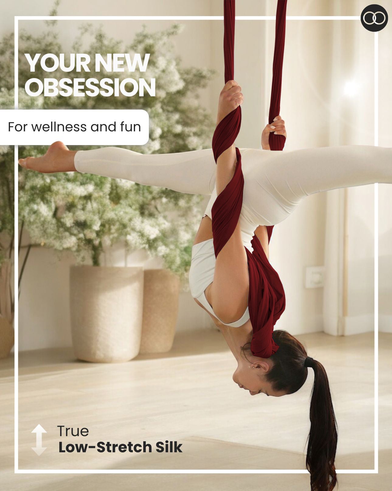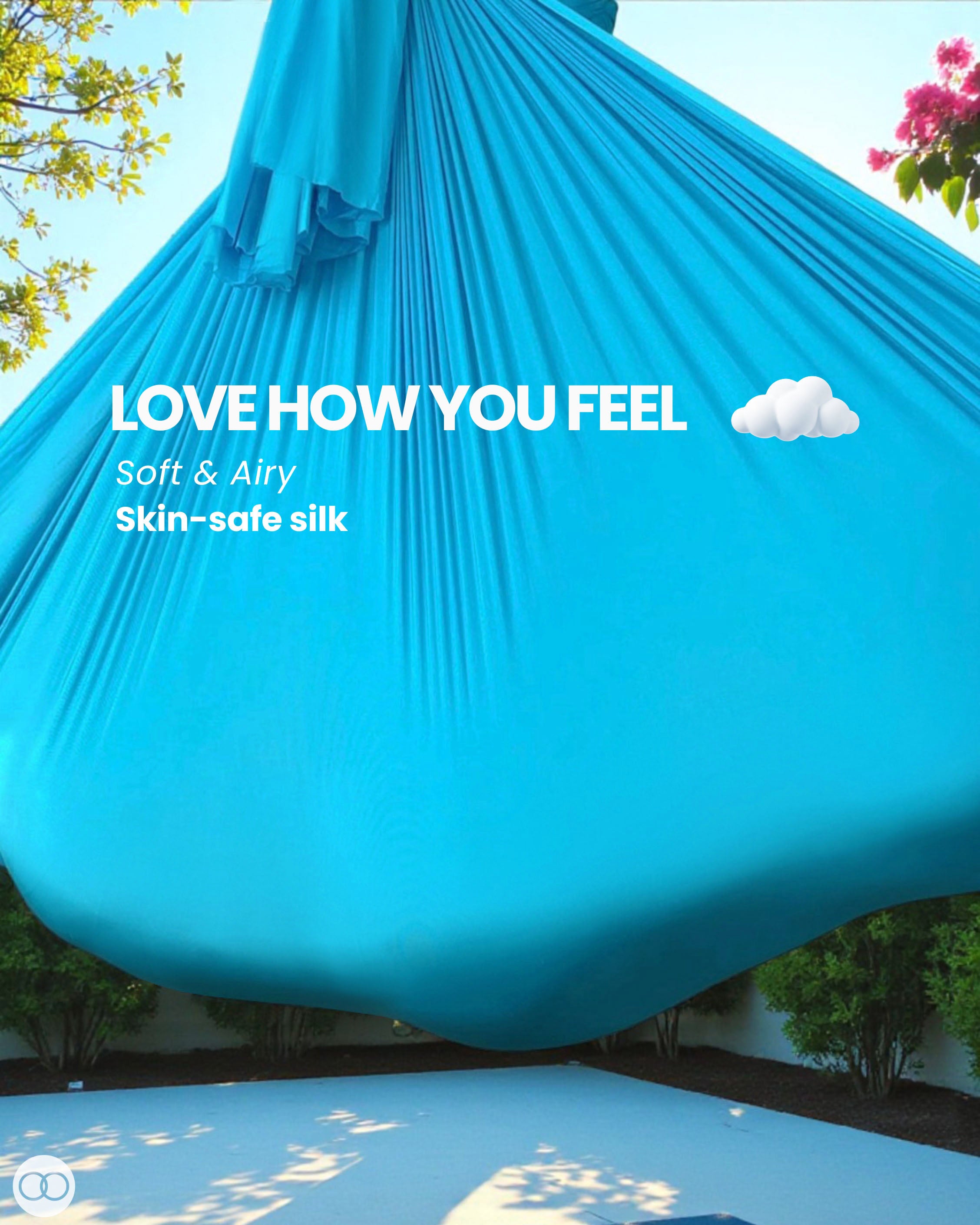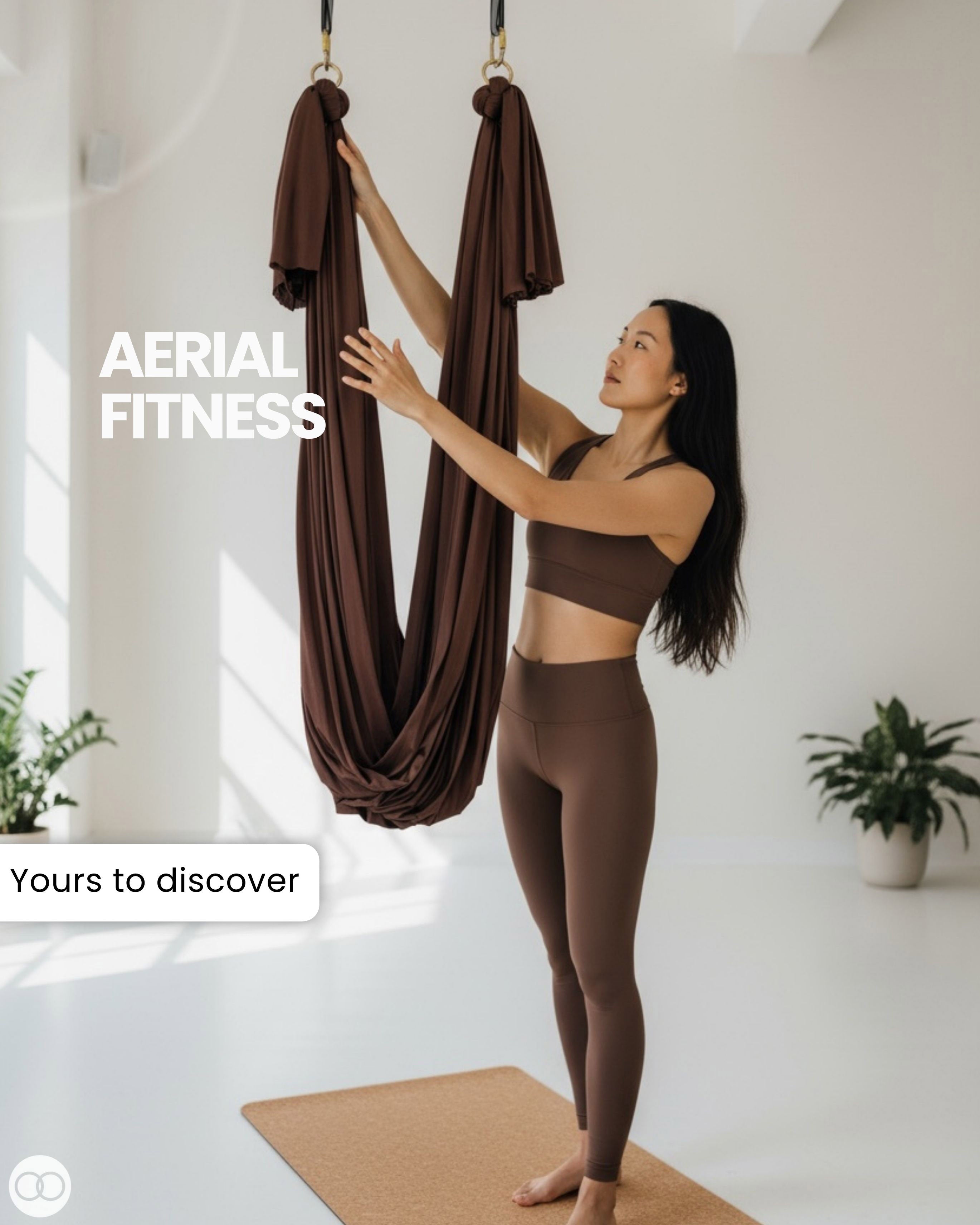 Aerial arts takes your fitness to the sky! Fly high on shimmery and supportive aerial silks.