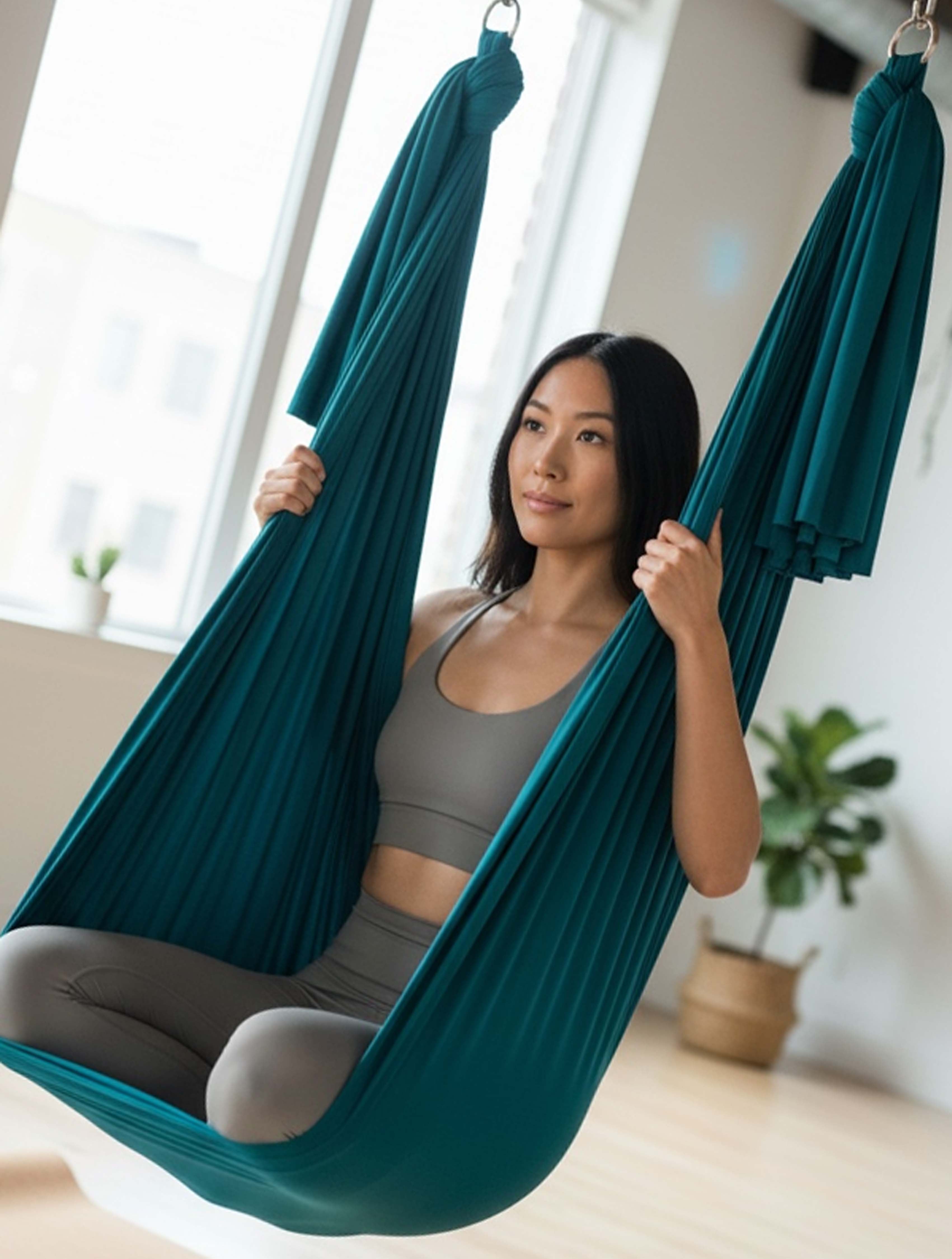 Ascend Aerial Hammock welcomes your aerial dance, aerial yoga, and creative expression. From the strength of the first touch to new horizons in your practice, Ascend supports you as you fly and flow in your world where artistry and athleticism rise together.