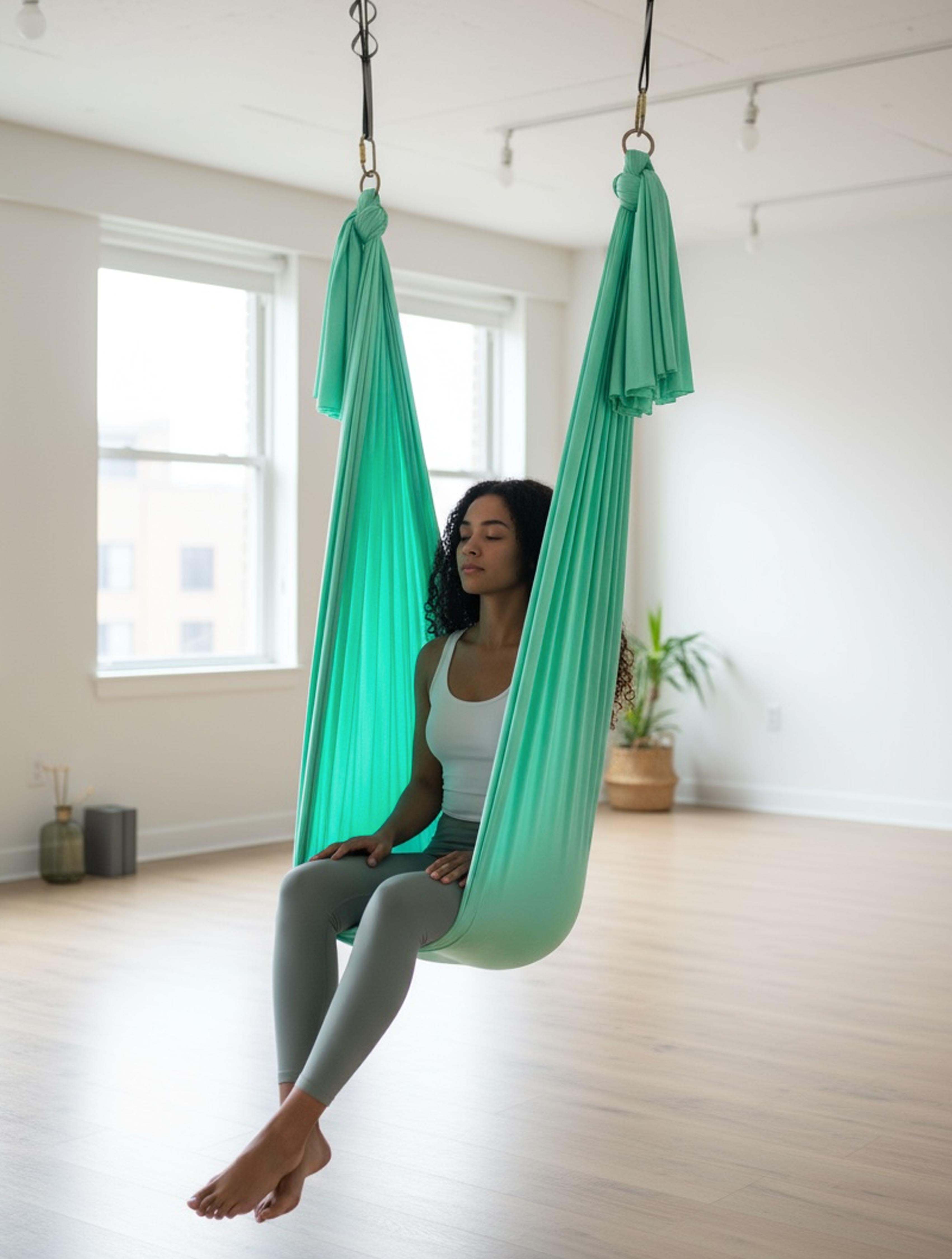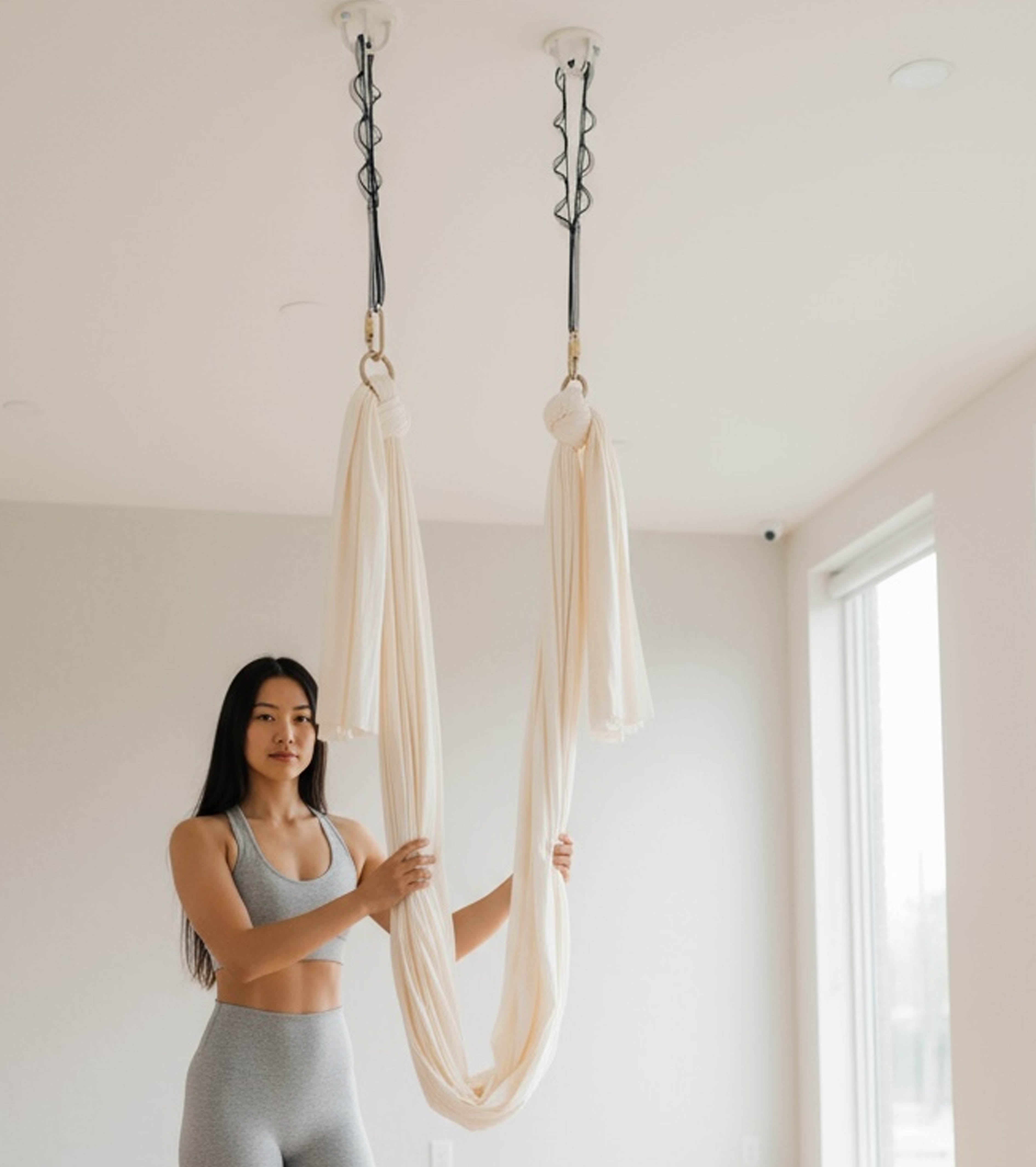 Hardware and silks clip securely into your safe rigging point. Knot tying guide included for a seamless setup in your home and studio.