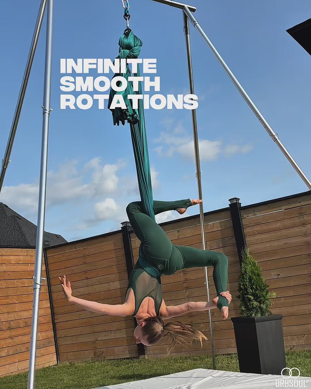 Turn your aerial hammock into a smooth spinning, single-point sling. Create new aerial dynamics and feel the freedom of infinite smooth rotations.